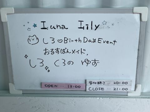 | 営業時間 | 平 日 15:00〜22:00 土日祝 14:00〜22:00 または 13:00~21:00 (21時または20時受付終了) | ||||||||||||||
