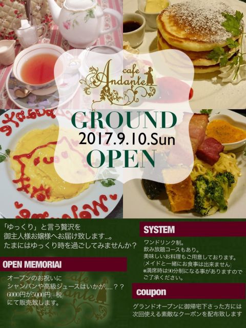 営業時間 平日15時〜22時。土日祝12時〜22時。不定期で営業時間が変わる場合がございます。詳しくは下記スケジュール表をご確認下さいhttp://andante.jp/ftschedule221/schedule.cgi