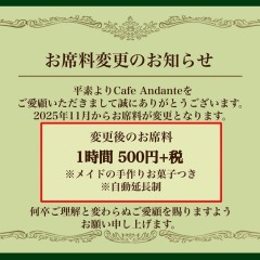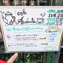 | 営業時間 | 平日15時〜22時。土日祝12時〜22時。不定期で営業時間が変わる場合がございます。詳しくは下記スケジュール表をご確認下さいhttp://andante.jp/ftschedule221/schedule.cgi | ||||||||||||||