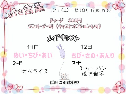 10/11,12 cafe営業 https://t.co/8PbkRL27tr