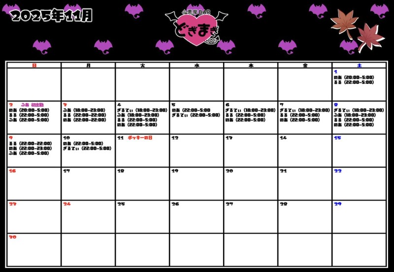 | 営業時間 | 18:00-5:00 | ||||||||||||||