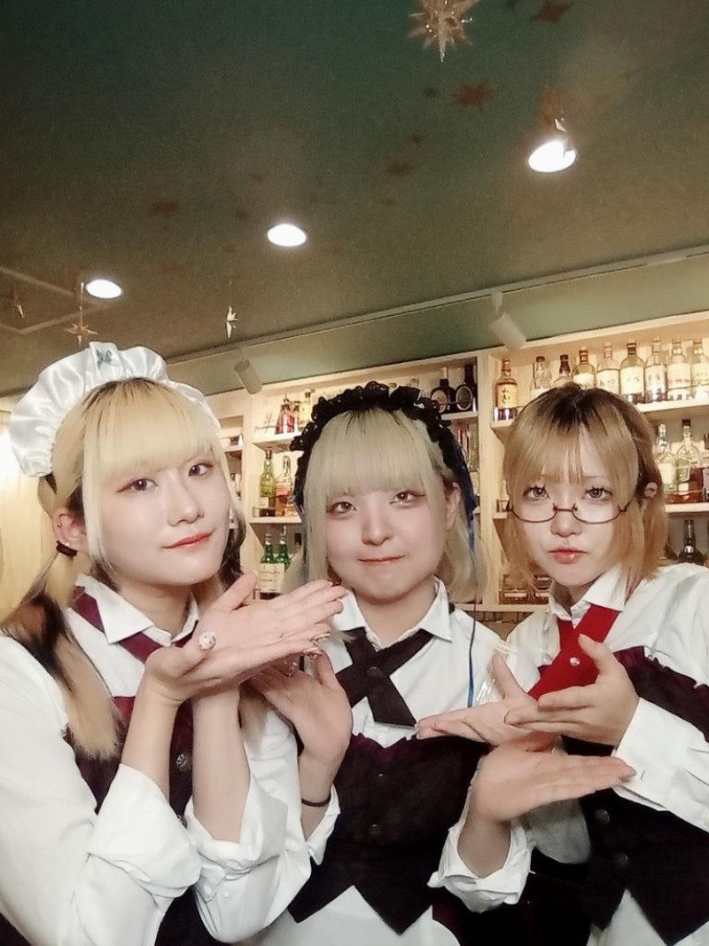 火曜日OPENしました〜❤️‍🔥 全員金髪なことあります!! めう ゆあ えるか お待ちしておりますっ🙂‍↕️ #メイドバー #大久保 https://t.co/toQMnxS34K
