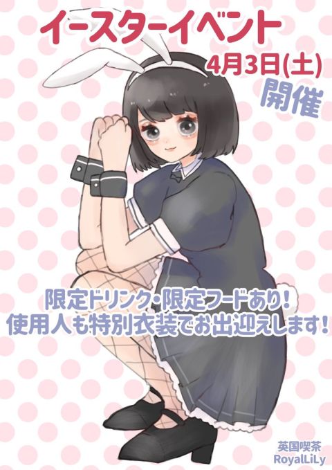 ❣️イベント情報❣️ 4月3日(土) イースターイベント開催🐰✨ 使用人が考えたイースター限定メニューもあります❣️ 特別な衣装も乞うご期待🐰❤ お楽しみに🎶 #英國喫茶RoyalLily https://t.co/RaAFwK2S9x