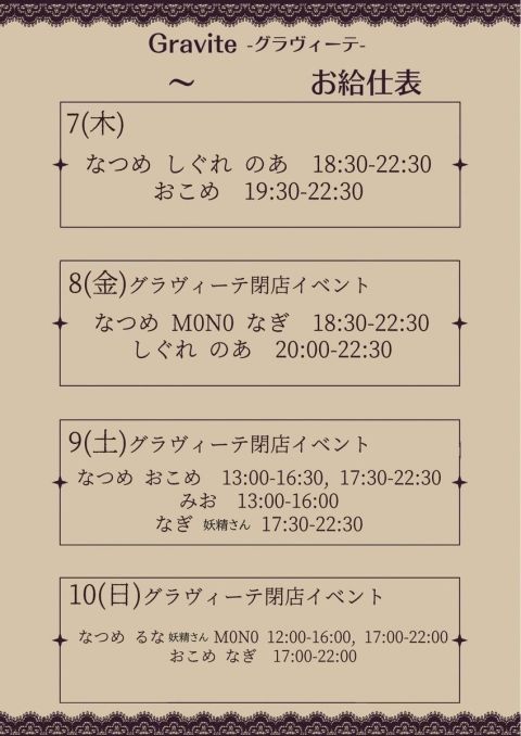 いよいよ閉店イベントです!今まで沢山の出会いがあったグラヴィーテの最後、前に向いて進めるよう盛り上げましょう🎓💐🌸