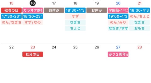 ◽︎9/16(火)…カラオケ解放デー🎤🎶