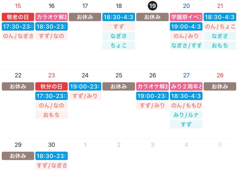 🎀écru9月𝗌𝖼𝗁𝖾𝖽𝗎𝗅e🎀 ◽︎9/13(土)…カラオケ解放デー🎤🎶 ◽︎9/16(火)…カラオケ解放デー🎤🎶 ◽︎9/20(土)…学園祭イベント🏫✨ ◽︎9/27(土)…みり2周年&卒業イベント🎓💐 https://t.co/OvNE1SupnQ