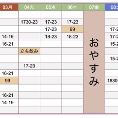 | 営業時間 | 18:00〜 | ||||||||||||||