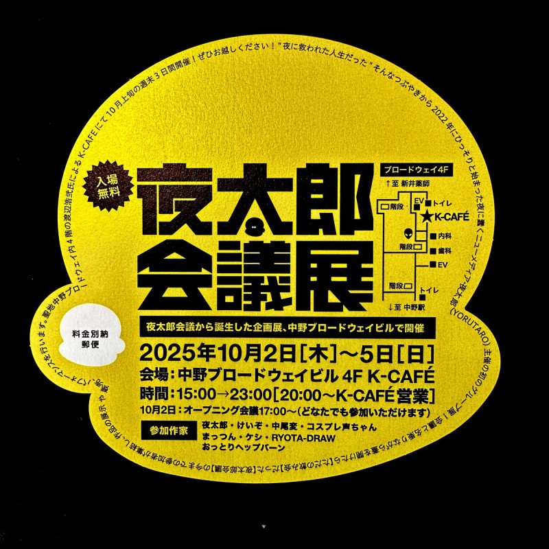 2025/10/04(土) 作家の渡辺浩弐さんのお店K-CAFEで開催されてる夜太郎会議展に行ってた!コーヒー飲みながらサブカルな会話に花が咲く楽しい空間だった!10/5(日)まで。合わせて購入した『中野ブロードウェイ怪談』にサインいただいてきました。本棚に置いてありますー 今日も湯島で待っているー https://t.co/A8J0bY2Gtf