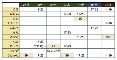 | 営業時間 | 18:00〜 | ||||||||||||||