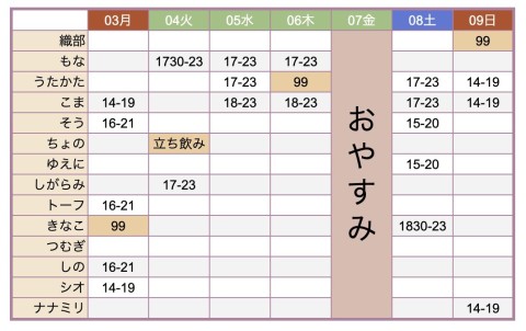 11/03-11/09の #気絶と昭和99年お出迎え予定 です ▶︎3(月)の気絶は祝日につき14-21営業 ▶︎5(水)は昭和99年、臨時休業です ▶︎7(金)は内部行事のため気絶も昭和99年もお休みです よろしくお願いいたしまーす https://t.co/xXjSz6Ula1