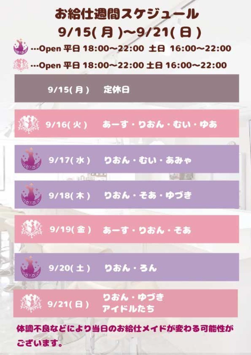 【お給仕週間スケジュール】