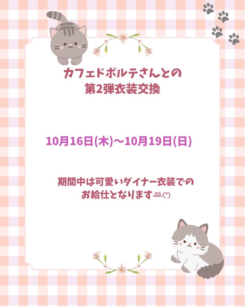 カフェドポルテさんとのコラボ第1弾は10月10日までです!記念ステッカーをぜひGETしに両お屋敷へ遊びに来てください🐰🎀