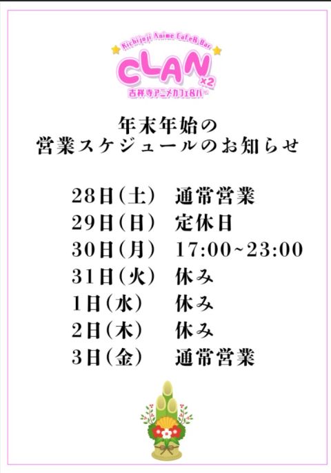 | 営業時間 | カフェタイム【17:00〜22:00】 バータイム【22:00〜4:00】 | ||||||||||||||