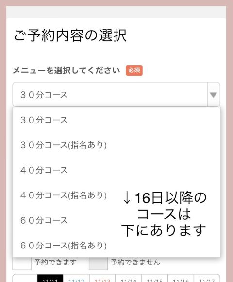 11/16以降のネット予約について 新料金でのコースはメニューを下にスクロールしていただくと出てきますので、そちらを選択してご予約ください。 (旧コースは16日からは削除されますので数日見にくいですがご了承下さい。) https://t.co/5XqQiz3F9a
