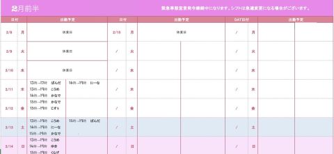 2月11日から15日までのシフトになります🙇♀️ https://t.co/qm7tFIKRja