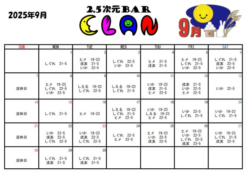 9月シフト更新✨✨🩵