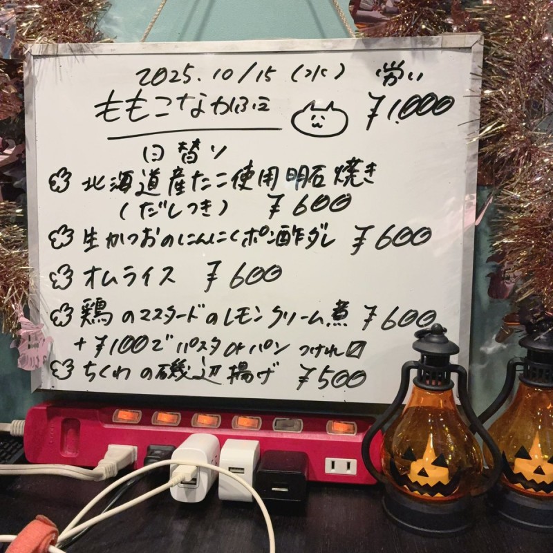 日替わりは明石焼きと生かつおとオムライスと鶏のマスタードのレモンクリーム煮