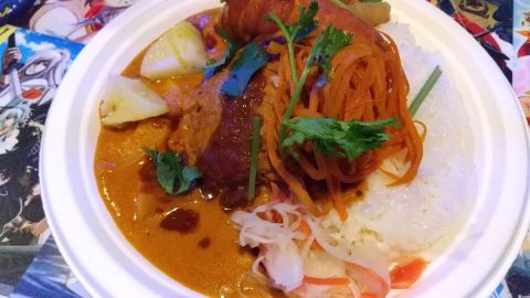 ココナッツミルクたっぷりのカレーとウインナー、コロッケバ入り!カレーとドリンク一杯だけの人もオッケーですよ! https://t.co/xAnZ7saW6u