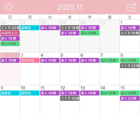 11月前半の出勤予定です。