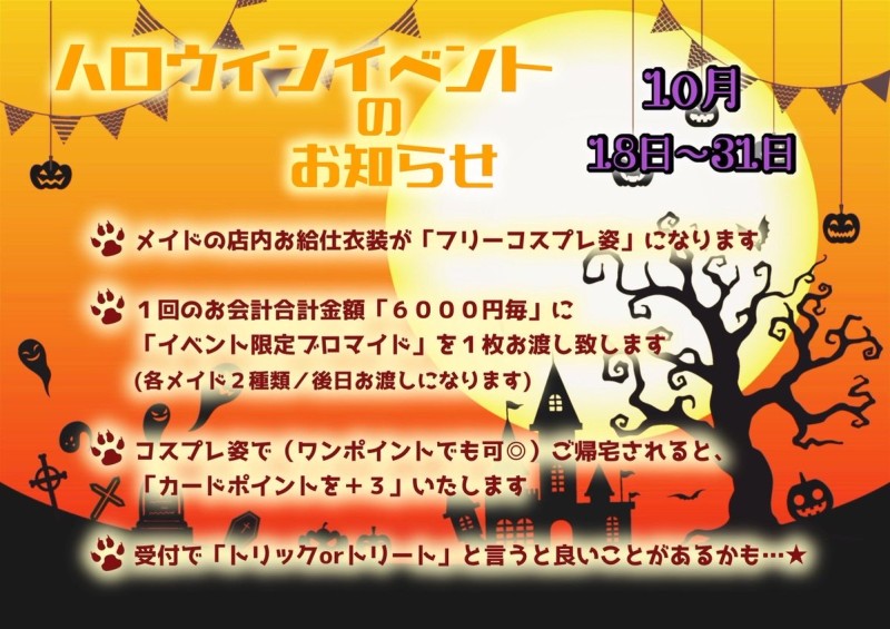 本日の営業日時は【10月31日】【15:00〜21:00】
