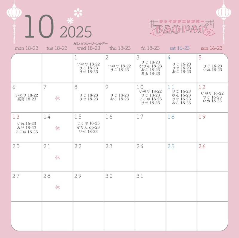 🐼10月の予定🐼