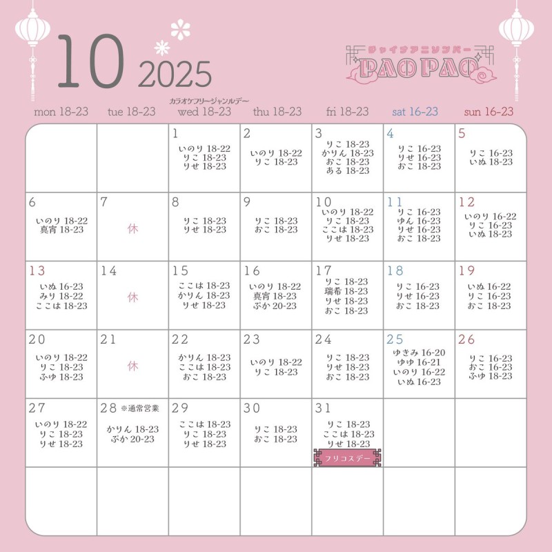 🐼10月の予定🐼