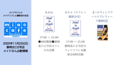 👑本日11月2日(日)のミアカフェ静岡北口2号店