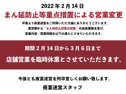 | 営業時間 | ★月曜日〜土曜日 OPEN18:00〜LAST翌5:00 ★日曜日 OPEN18:00〜LAST23:00 ★年中無休 | ||||||||||||||